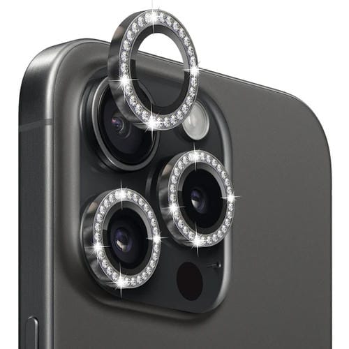 Protector de Lente de Cámara Northjo para iPhone 15 Pro y 15 Pro Max Película Anillo Diamantes Metal Vidrio Templado (Grafito)
