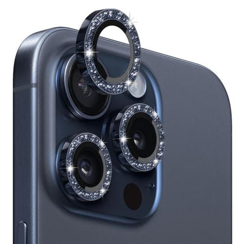 Pour iPhone 15 Pro/15 Pro Max NORTHJO Protecteur d'objectif d'appareil photo en verre trempé Bling Glitter Film d'anneau en métal (bleu)