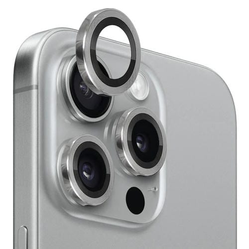 Pour iPhone 15 Pro / 15 Pro Max NORTHJO Protecteur d'objectif de caméra Verre Trempé CD Vein Film Anneau Métallique (Gris)