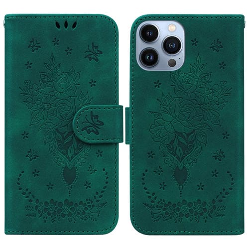 Pour iPhone 15 Pro Étui de téléphone en cuir gaufré Butterfly Rose (Vert)