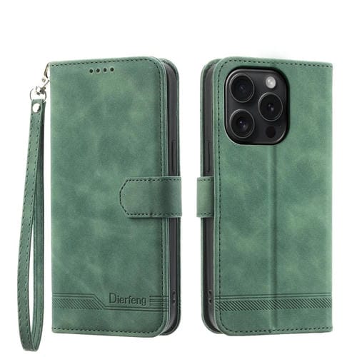 Funda para iPhone 15 Pro Dierfeng Dream Line TPU y Cuero Pu (Verde)