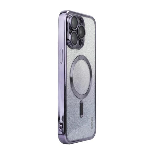 Estuche para teléfono Enkay Hat-Prince para iPhone 15 Pro a prueba de golpes con brillo magnético y Película para Lentes (Púrpura)