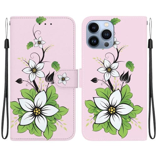 Estuche para Teléfono iPhone 15 Pro Cuero Dibujo Coloreado Textura de Cristal (Lirio)