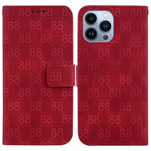 Estuche para Teléfono iPhone 15 Pro Cuero En Relieve Doble Forma de 8 (Rojo)