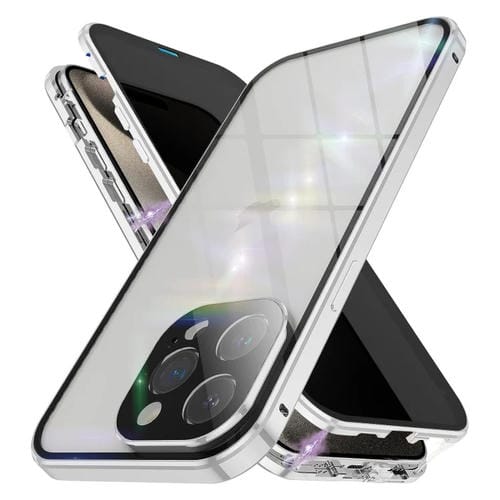 Estuche para Teléfono iPhone 15 Pro Vidrio Templado Magnético Doble Cara Anti-Peeping (Plateado)