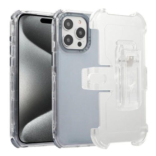 Funda para iPhone 15 Pro Frosted PC y Estuche TPU con Clip Trasero (Azul Transparente)