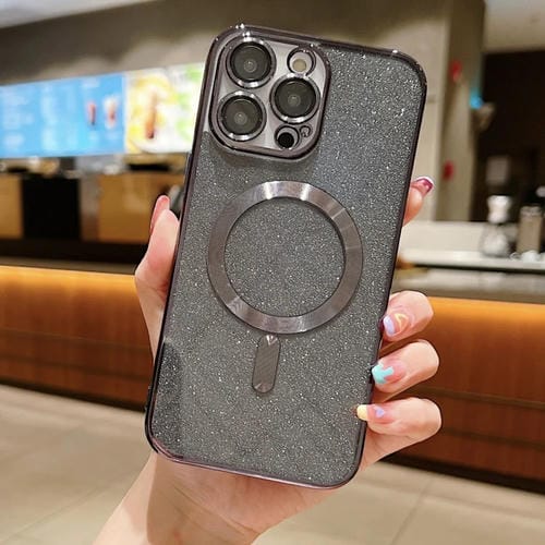 Funda para Teléfono iPhone 15 Pro Magsafe Glitter Galvanoplastia TPU (Negro)