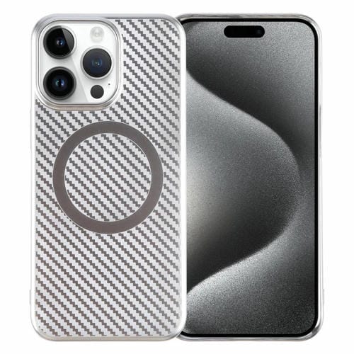 Caja de Teléfono para iPhone 15 Pro Max PC Magsafe Transparente Fibra de Carbono (Starlight Silver)