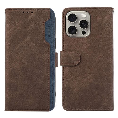 Funda de Cuero Abeel para iPhone 15 Pro Max Color Block Magnética Rfid (Marrón-Azul)