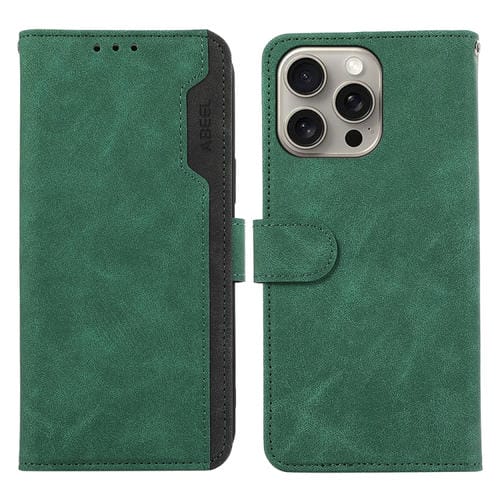 Funda para iPhone 15 Pro Max Abeel Color Block Cuero Magnética Rfid (Verde-Negro)