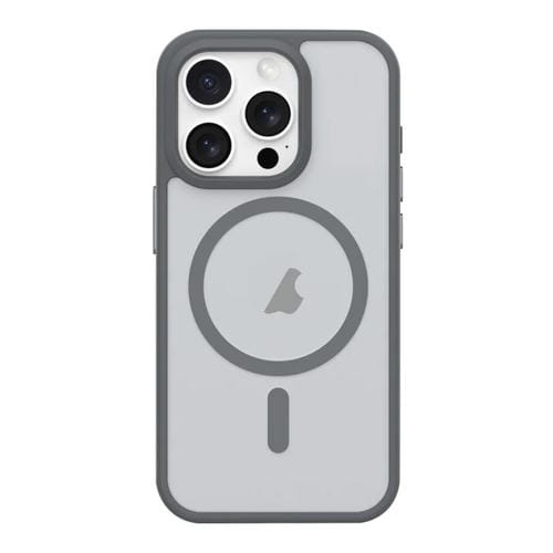 Estuche para teléfono iPhone 15 Pro Max Magsafe Mate a prueba de golpes con botón de metal y sensación de piel (Gris)