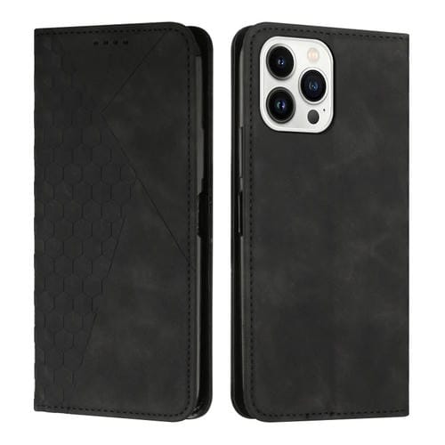Funda para iPhone 15 Pro Max Diamond Splicing Skin Feel Cuero Magnética (Negro)
