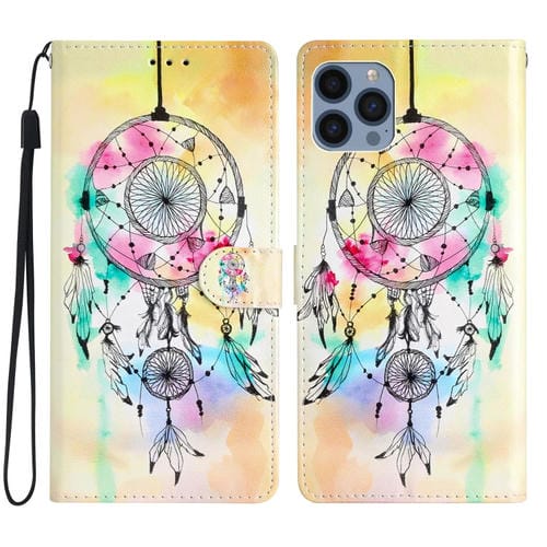 Estuche para Teléfono iPhone 15 Pro Max Cuero con Dibujo Coloreado Atrapasueños