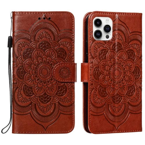 Funda para Teléfono iPhone 15 Pro Max Cuero con Tapa Horizontal y Patrón Mandala (Marrón)
