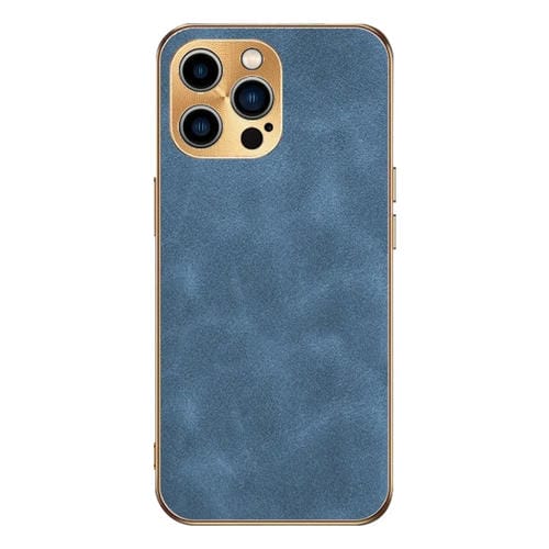 Funda para Teléfono iPhone 15 Pro Max Piel de Cordero Galvanizada (Azul)