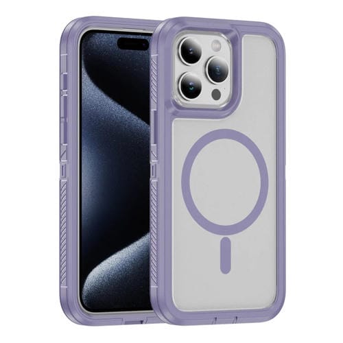 For iPhone 15 Pro Max Guard Magsafe Phone Case with Matte Magnetic Ring (Light Purple)
