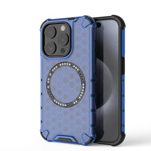 Funda para Teléfono iPhone 15 Pro Max Honeycomb Magnetic Ring a Prueba de Golpes (Azul)