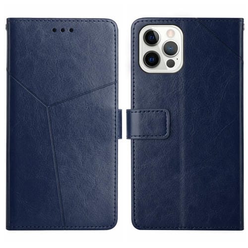 Funda de Cuero para iPhone 15 Pro Max Ht01 con Tapa y Patrón en Forma de Y (Azul)