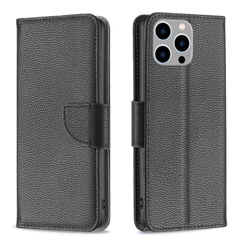 Funda para iPhone 15 Pro Max Litchi Texture Flip de Cuero (Negro)