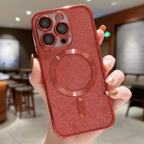 Funda para Teléfono iPhone 15 Pro Max Magsafe Glitter Galvanoplastia TPU (Rojo)