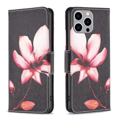 Pour iPhone 15 Pro Max Étui de téléphone en cuir à rabat à motif de dessin coloré (Lotus)
