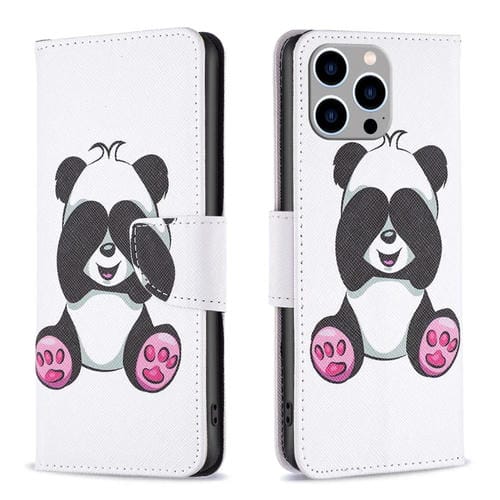 Pour iPhone 15 Pro Max Étui de téléphone en cuir à rabat à motif de dessin coloré (Panda)