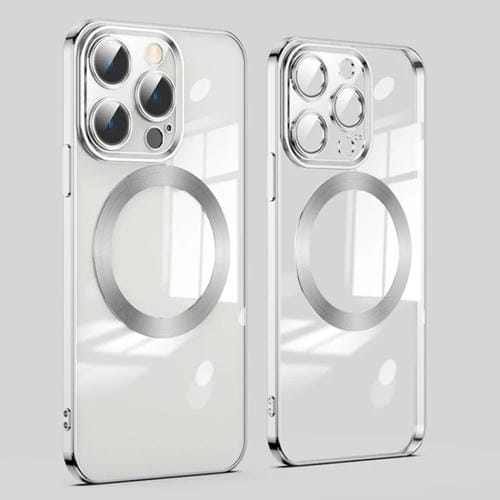 Pour iPhone 15 Pro Max MagSafe Protecteur d'objectif Étui de téléphone galvanisé (argent)