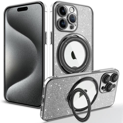 Estuche para teléfono iPhone 15 Pro Max Rotation Magsafe Holder TPU con brillo degradado (Negro)