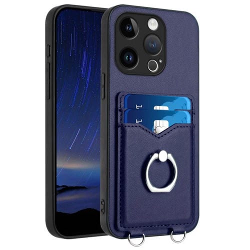 Estuche para Teléfono iPhone 15 Pro R20 con Soporte para Tarjeta y Anillo (Azul)