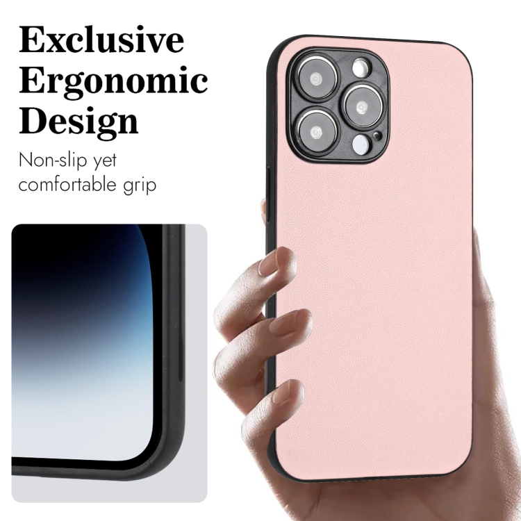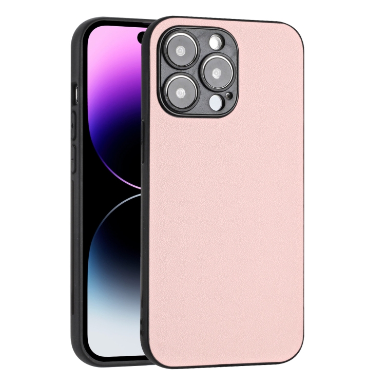 Funda para teléfono iPhone 15 Pro R20 con patrón de cuero (Rosa)
