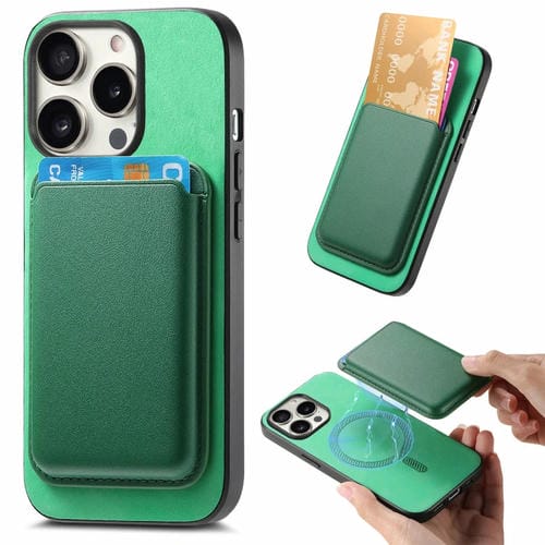 For iPhone 15 Pro Retro Magsafe Card Bag PU Leather Phone Case Back Cover (Green)