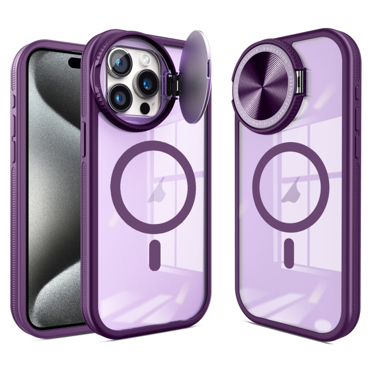 Pour iPhone 15 Pro Round Camshield MagSafe TPU Hybrid PC Phone Case (Violet)