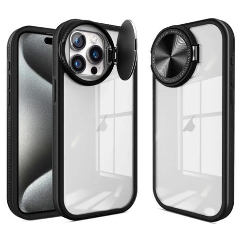 Pour iPhone 15 Pro Round Camshield TPU Hybrid PC Phone Case (Noir)