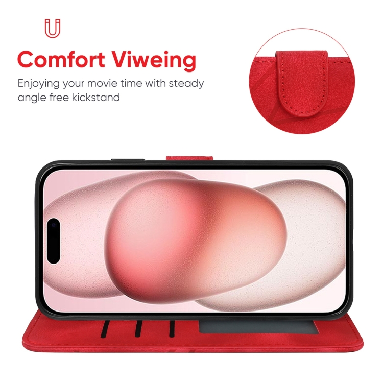 Funda para teléfono iPhone 15 Skin Feel cuero con líneas geométricas (Rojo)