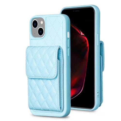 For iPhone 15 Vertical Wallet Rhombic Leather Phone Case(Blue)