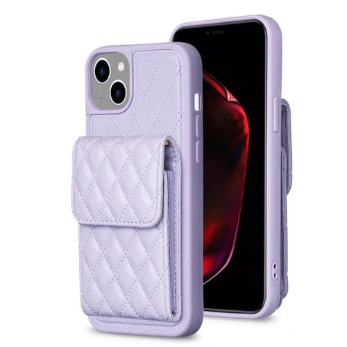 For iPhone 15 Vertical Wallet Rhombic Leather Phone Case(Purple)