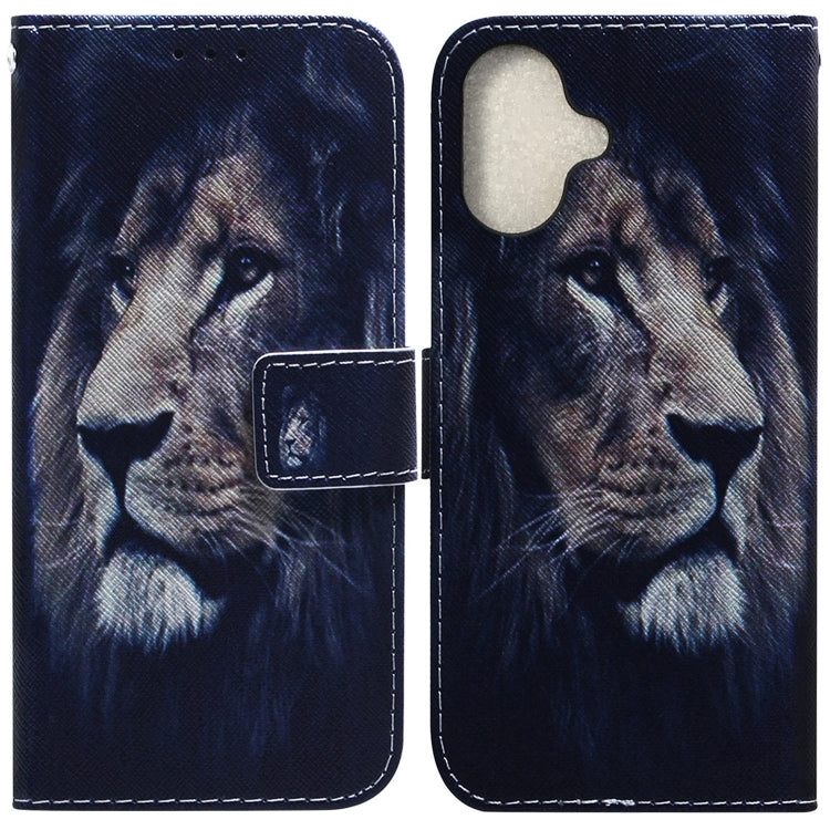Pour iPhone 16/16 Plus Étui en cuir à rabat avec dessin coloré (Lion)
