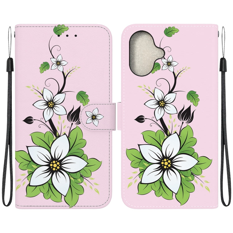 Pour iPhone 16 Étui en cuir à dessin coloré à texture cristalline (Lily)