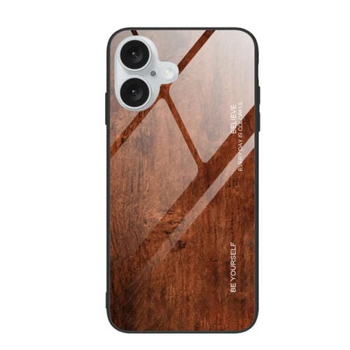 Caja de teléfono para iPhone 16 Plus de vidrio con grano de madera (Marrón Oscuro)