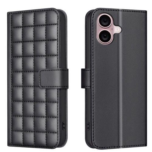 Funda para iPhone 16 Plus Cuero Textura Cuadrada (Negro)