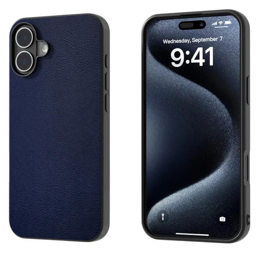 Funda para Teléfono iPhone 16 Plus Cobertura Total Marco Negro Cuero Pu (Azul Oscuro)