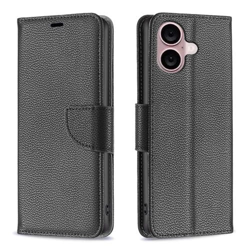 Funda para Teléfono iPhone 16 Plus Cuero con Tapa Textura Litchi (Negro)