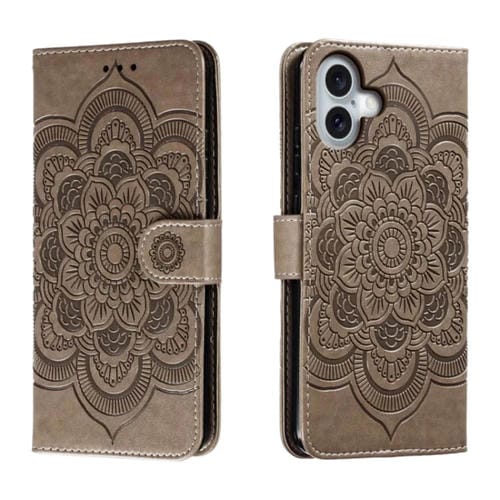 Funda para Teléfono iPhone 16 Plus Cuero Tapa Horizontal Patrón Relieve Mandala (Gris)