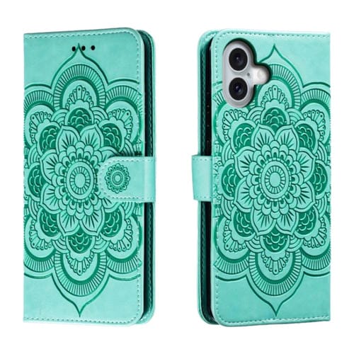 Funda para Teléfono iPhone 16 Plus Cuero con Tapa Horizontal y Patrón Mandala (Verde)