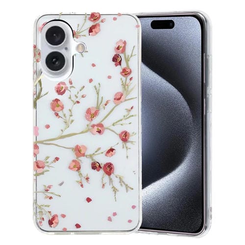 Funda para Teléfono TPU iPhone 16 Plus con Patrón de Pintura Colorida (Flores Rojas)