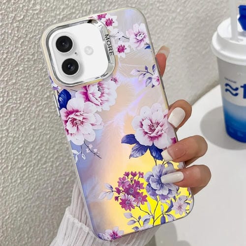Funda para Teléfono TPU iPhone 16 Plus Textura Flor Láser Galvanizada (Peony Ah11)