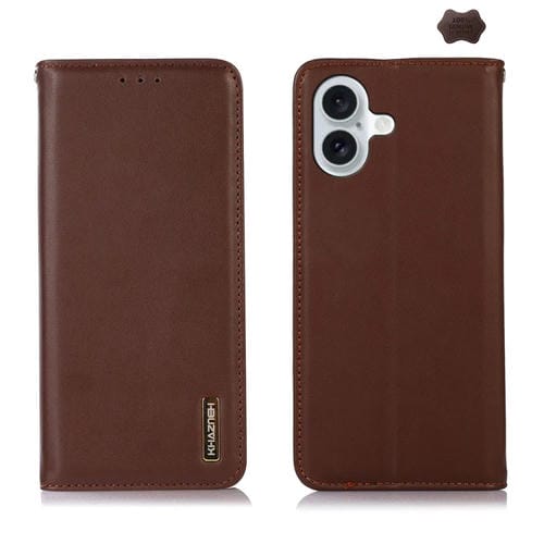 Funda para Teléfono Khazneh Nappa para iPhone 16 Plus Cuero de Vaca con Capa Superior (Marrón)