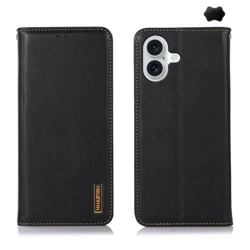 Funda para Teléfono Khazneh Nappa para iPhone 16 Plus Cuero de Vaca con Capa Superior (Negro)
