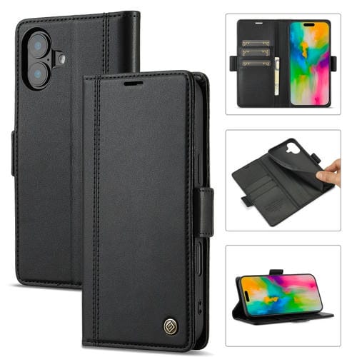 Funda para iPhone 16 Plus Lc.Imeeke Cuero con Ranuras para Tarjetas (Negro)
