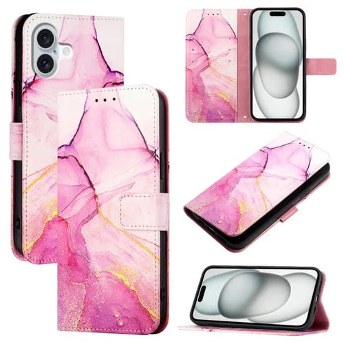 Funda para Teléfono iPhone 16 Plus Pt003 Cuero con Tapa Patrón Mármol (Rosa, Morado y Dorado)